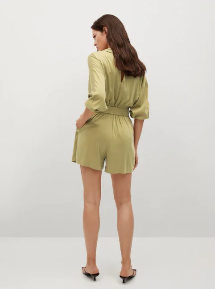 Un mono casual donde puedas lucir tu elegancia y puedas llevarlo con comodidad y confort a todas las actividades que realizas cada día. Busca el mono escote cruzado en alguna de las tiendas Mango. Cuello pico con solapa, diseño corto y escote cruzado, pertenece a la colección Fiesta.