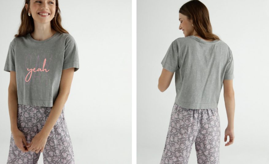 Vamos con una propuesta moderna de Green Coast, como la anterior con estampado, en este caso un texto. Se trata de esta camiseta de mujer crop con print disponible en blanco, lila y gris. Otra propuesta sencilla pero elegante, para ir casual pero bien vestida con cualquier combinación. Está fabricada también 100% en algodón y con el 20% de El Corte Inglés se queda, una prenda más, por debajo de los 12 euros, concretamente 10,39 euros. A qué esperas para entrar aquí y comprarla.