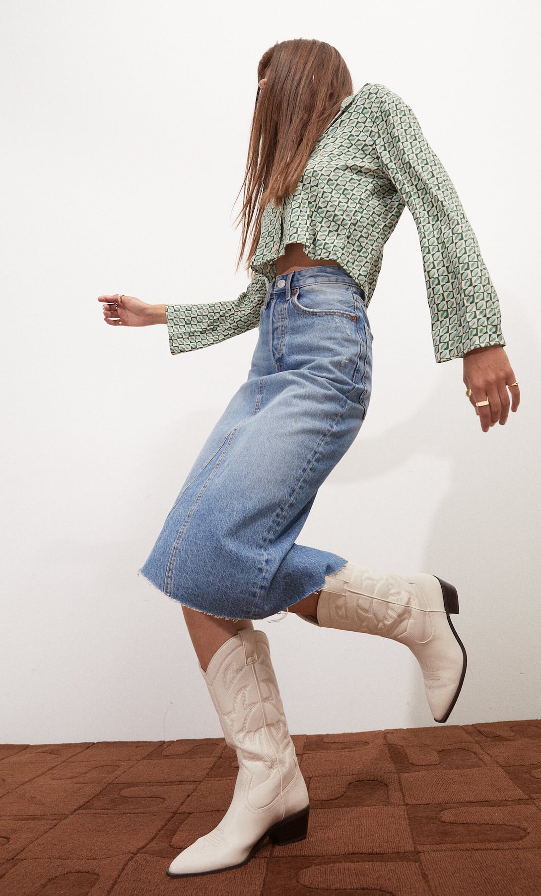 El estilo vintage volverá a predominar en nuestro armario esta nueva temporada. Conociendo este dato importante, una de las prendas que no podrán faltar este otoño serán las faldas largas de tejido denim.