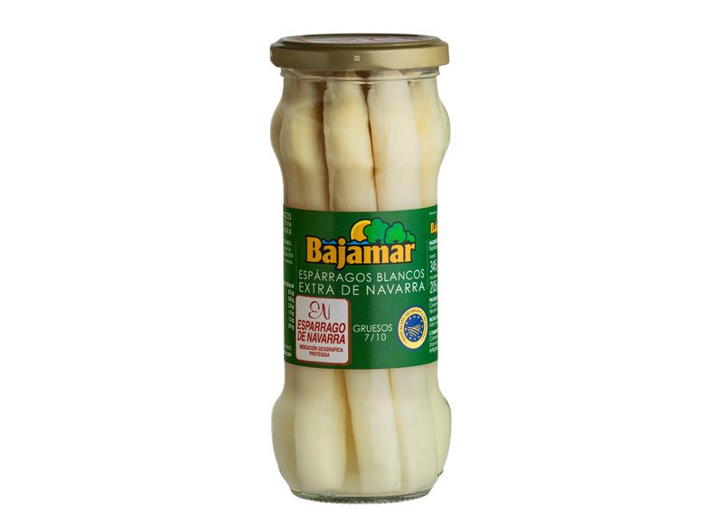 El octavo puesto en el análisis de mejores espárragos de supermercado para la Organización de Consumidores y Usuarios son los espárragos blancos extra de Navarra Bajamar gruesos 6/8. Tras analizarlos en profundidad, se le ha otorgado una muy buena calidad, con una puntuación final de 76.
