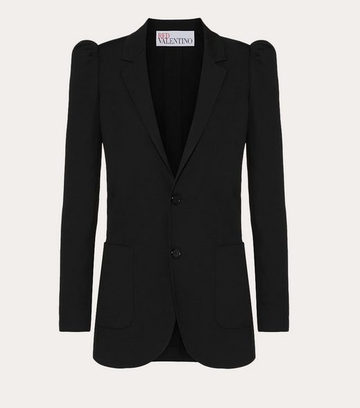 Otra propuesta para la temporada que queremos destacar es esta preciosa chaqueta fabricada con tela de gabardina elástica de viscosa y lana virgen. El corte es tipo blazer, con un bonito detalle de mangas abullonadas en los hombros. Tiene solapas y cuello de pico y cierra con dos botones. Tiene dos bolsillos laterales tipo parche y botones decorativos en los puntos. Aporta un toque sofisticado a cualquiera de sus estilismos. Es de color negro y tiene un precio de 695€. Te dejamos aquí el enlace.