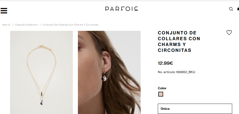 Este conjunto de collares son otro de los productos preferidos por las mujeres en esta temporada, por la elegancia que ofrecen. Son collares con charms y circonitas, que son perfecto de usar en cualquier momento del día, por la frescura que tienden a ofrecer. Son fabricado con un 80% de cobre, 10% de circonio y 10% de esmalte. Si deseas comprar este conjunto de collares sólo debes entrar por la plataforma de Parfois a un precio de 12.99€.
