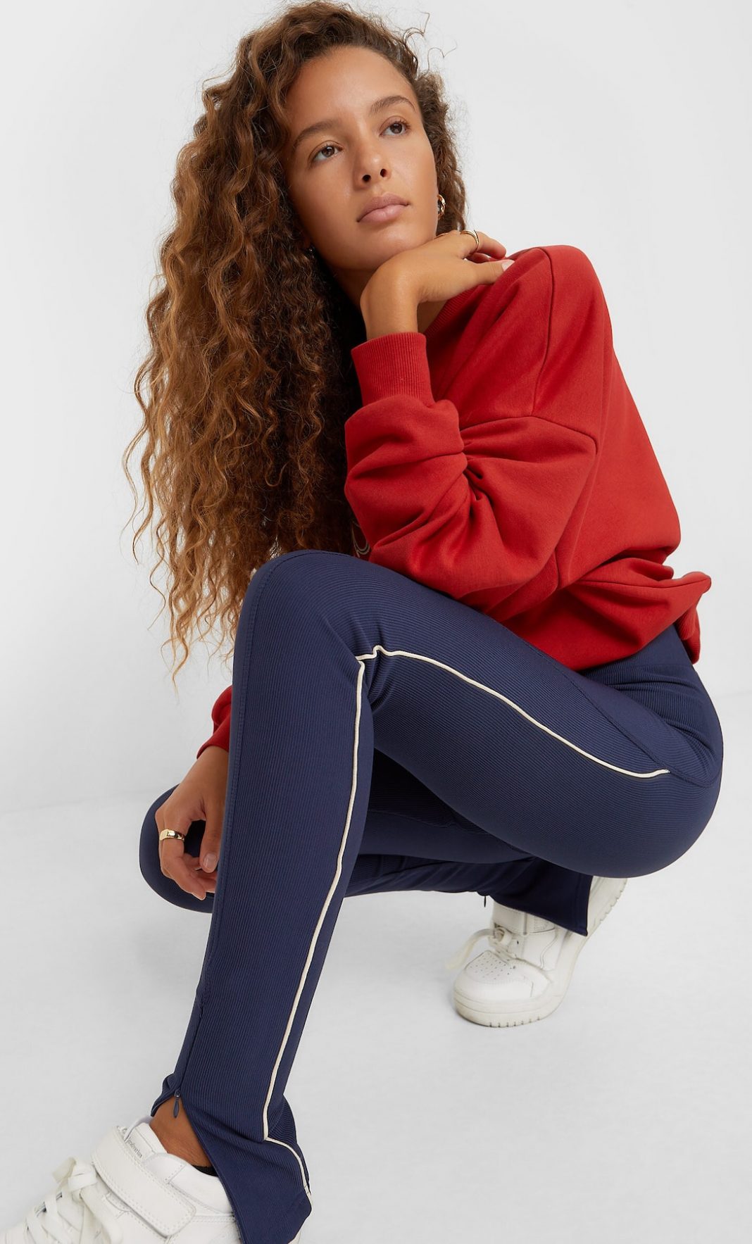 Los Legging banda lateral que traen las tiendas Stradivarius para este otoño, es la prenda que no puede faltar en tu closet. De tiro alto, en un delicado color marino y en la talla que se ajuste a tu cuerpo.