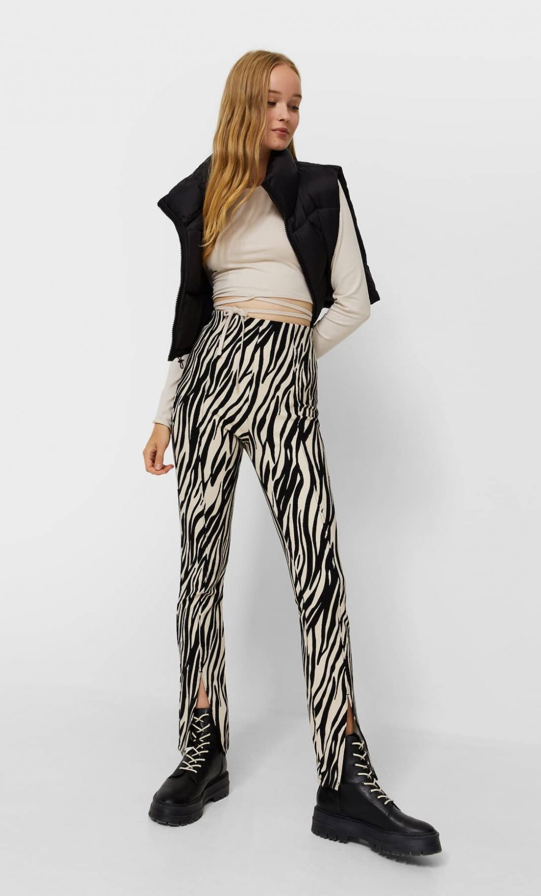 Para lucir tu belleza, junto con tu figura en este otoño que pronto inicia, Tiendas Stradivarius, trajo la malla otoman splitn. Con cintura elástica, de corte bajo y estampado animal, en un vistoso color negro.