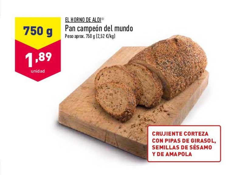 El horno de Lidl destaca por su gran variedad. Podemos encontrar hogazas, panecillos, baguettes, productos de bollería o empanadas de diferentes sabores y variedades. Entre toda esta oferta encontramos el pan denominado como Campeón del mundo, que es uno de los preferidos por los clientes por su sabor y su precio. Está elaborado con masa madre y varios tipos de semilla. Cada barra cuesta en torno a los 1,89€.