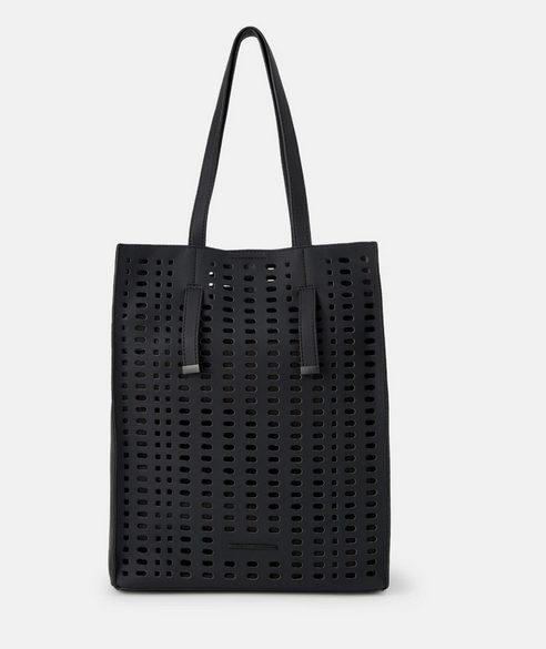 Como suele ser habitual, la marca Jo & Mr. Joe nos sorprende con diseños originales y divertidos como el de este bolso de hombro tipo shopper, grande, en color negro, fabricado en poliéster con un bonito y llamativo efecto troquelado. Tiene dos asas medias muy prácticas y cierra con imán. En el interior lleva un compartimento con cierre de cremallera. Las medidas son 13 (ancho) x 29 (fondo) x 38 (alto) cm y su precio en El Corte Inglés es de 49,90€. Aquí te dejamos el link.
