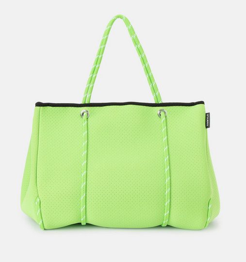 Uno de los bolsos más llamativos de la nueva colección de El Corte Inglés es este de la marca Vanylu, fabricado de neopreno perforado en un intenso color verde flúor. Es de hombro tipo shopper, de tamaño grande y con dos asas medias. Para ocasiones informales o para llevar al gym o a la piscina cubierta. Lleva cierre con imán y un bolsillo interior con cremallera. Tiene unas medias bastante amplias 25 (ancho) x 35 (fondo) x 28 (alto) cm, y su precio es de 79€. Lo puedes comprar en este link.
