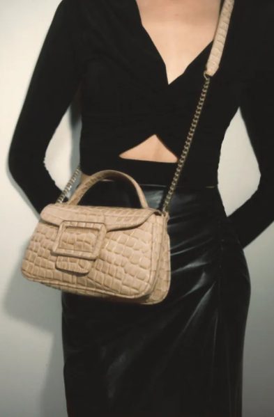 Delicada, atractiva y cómoda, ideal para llevarla en este otoño a la ocasión que se te presente. En su interior puede organizar todos los artículos que regularmente llevamos en nuestros bolsos o carteras. Destaca tu elegancia y tu porte de dama atractiva con esta bandolera. Precio Zara otoño 19.95 euros.