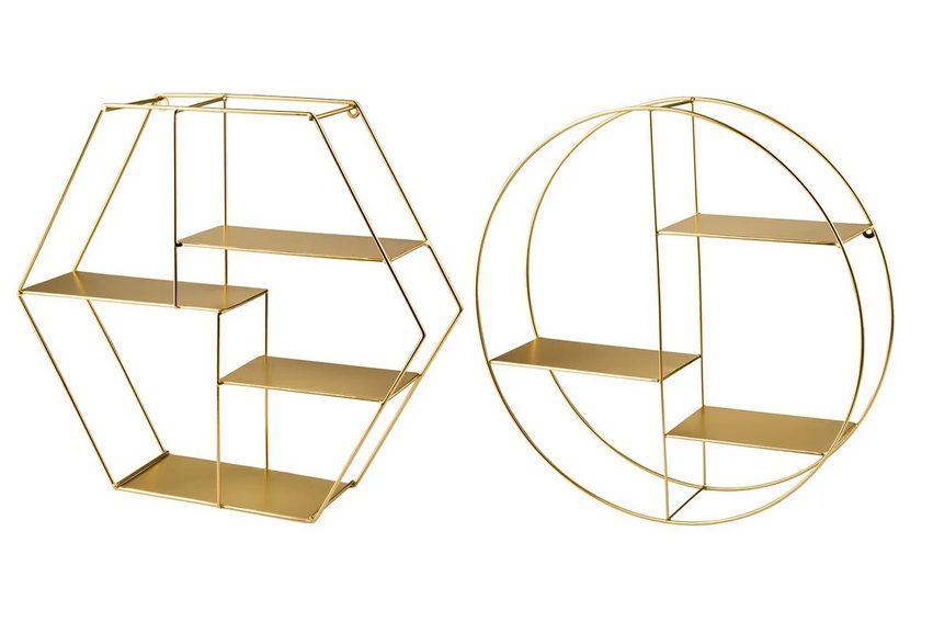 Estas estanterías están siendo todo un éxito desde que llegaron al bazar de Lidl. Con su original y sofisticado diseño, es un elemento práctico pero sobre todo muy decorativo, ideal para cualquier estancia. Está hecha en material metálico dorado, y hay dos modelos disponibles, uno redondo y otro hexagonal, ambos con estantes para colocar pequeños objetos. El modelo redondo mide 45 x 10,5 cm. y el hexágono 46 x 40 x 11 cm. y ambos tienen un precio de 8,99 €, todo un chollo.