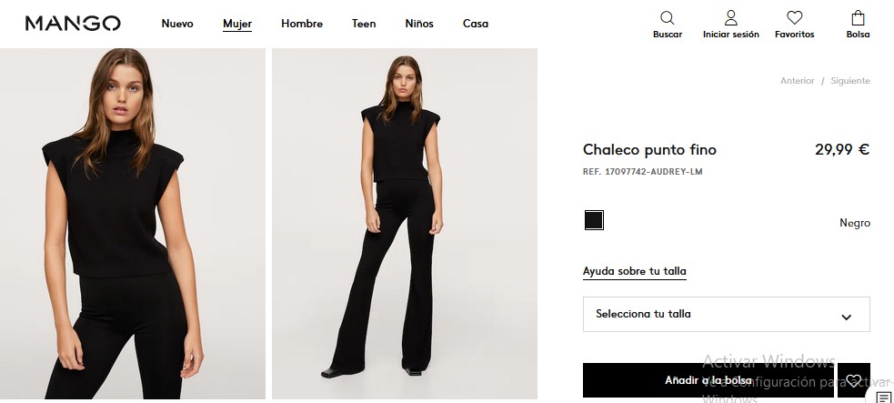 Este hermoso chaleco es otra de las prendas preferidas de las mujeres cuando entran a la plataforma. Dado que cuenta con un tejido de punto fino, inclusive su diseño es completamente recto. Además, la elaboración de su cuello es perkins y es sin mangas, por lo que es super cómodo de usar en cualquier ocasión del día. Entonces, si desean comprar este increíble chaleco punto fino solo deben entrar a Mango por un increíble precio de 29,99 €.