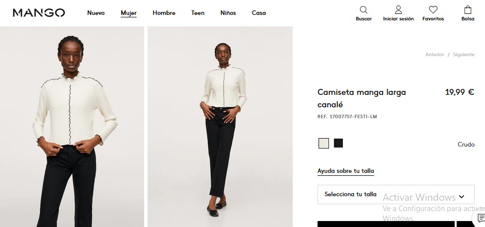 Esta camiseta está elaborada completamente en tejido con algodón, por lo que ofrece una comodidad en todo momento. Siendo otra de las más solicitadas en estas ofertas que tiende a ofrecer Mango. Inclusive, su diseño es de canalé, crop y recto; su cuello es halter y es de manga larga. Entonces, si deseas comprar esta hermosa camiseta solo debes entrar a Mango a un precio accesible de 19,99 €.