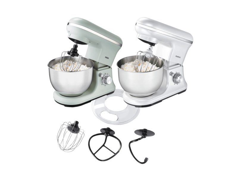 Entre los productos electrodomésticos más interesantes que se puede encontrar en Aldi está la batidora amasadora QUIGG. Este producto se encuentra disponible tanto en color perla como en verde por un precio de 59,99 euros.