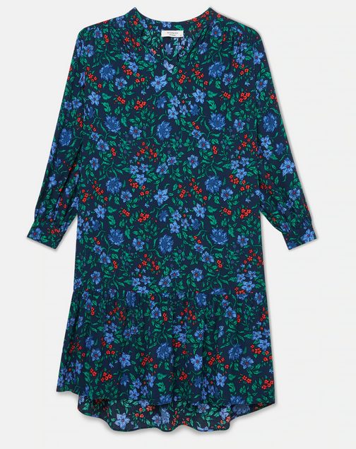 Los vestidos de corte midi están en tendencia, y además de cómodos y estilosos, resultan muy favorecedores. Este de la marca Woman de El Corte Inglés es de manga larga, con cuello tunecino y un volante en el bajo que le da cada y movimiento. Es ligero, versátil y muy femenino. Tiene un alegre estampado capaz de alegrar los días más grises. Además permite diversas combinaciones, por lo que es una prenda versátil y divertida. Te lo puedes llevar por 59,99€, pinchando en este link.
