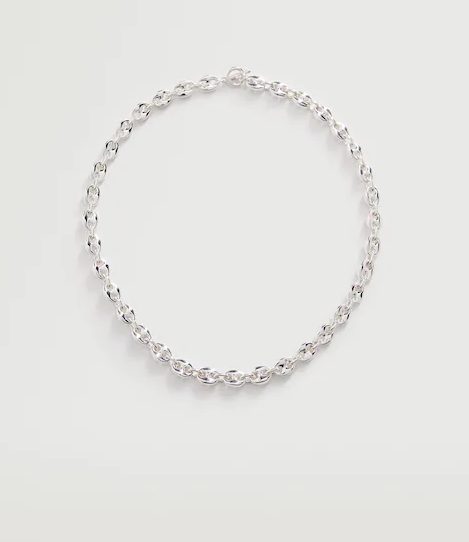Los collares son complementos que no pueden faltar, ya que completan nuestro look de forma muy personal. Gracias a Mango puedes añadir a tu estilismo un sencillo pero elegante collar con un diseño de eslabones totalmente en tendencia. Está fabricado en 70% zinc y 30% hierro, tiene cierre de gancho y está disponible tanto en plateado como en dorado. El precio es de 12,99€.