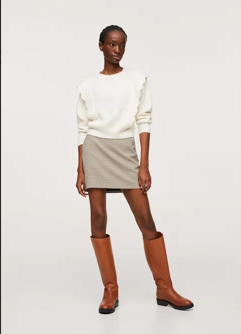 Su confección perfecta, en tejido de punto, mangas largas y cuelo redondo, con detales de volantes. Algo ajustado a tu cuerpo por lo que será fácil destacar tu figura. En dos vistoso colores, crudo y rosa pastel. En promoción Mango 29.99 euros.