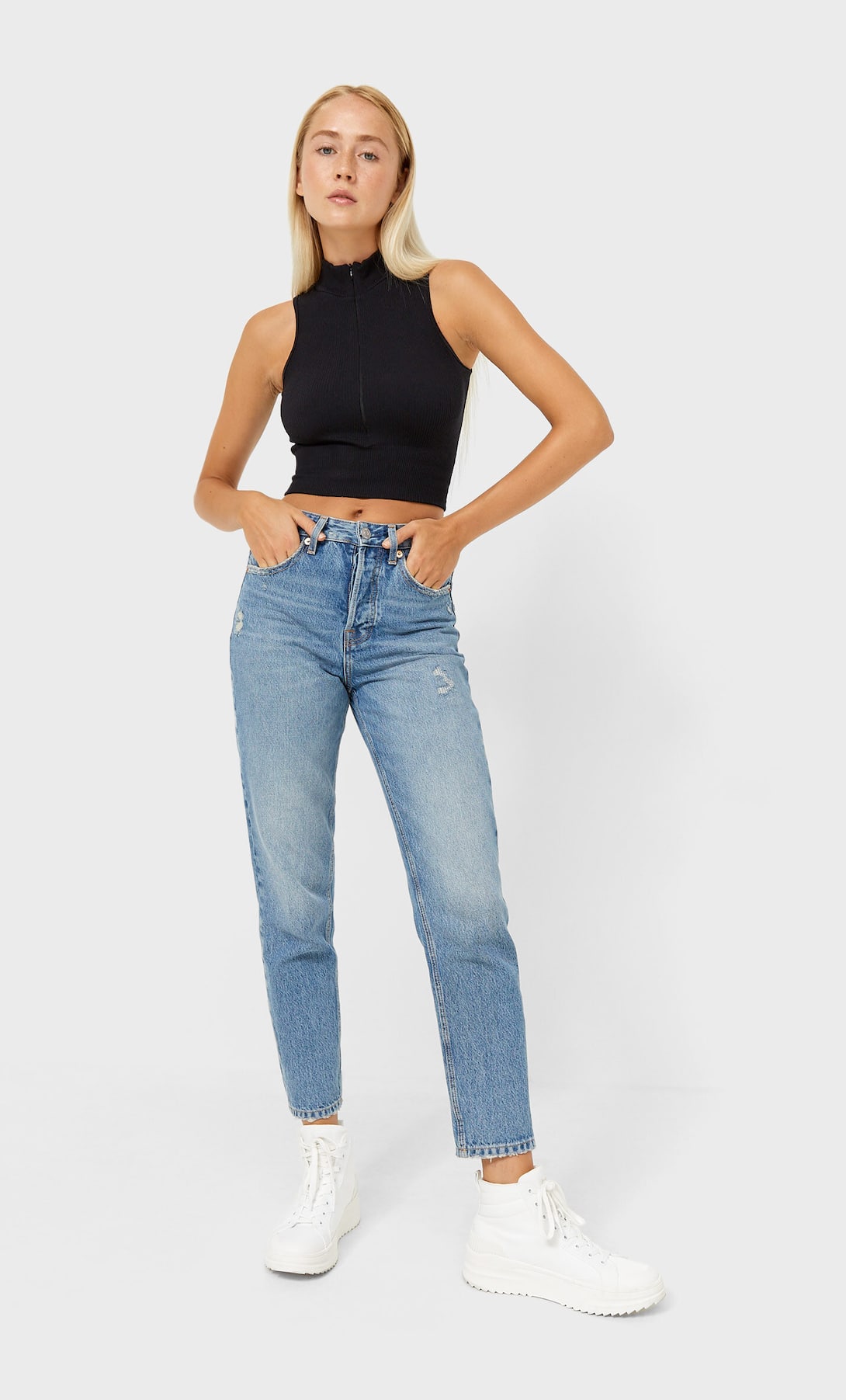 Destaca toda tu figura, sin perder en nada tus dotes elegantes, se atrevida y modela toda tu belleza y elegancia. Visita una de las tiendas Stradivarius y pruébate este hermosos top y decide por el color que más te guste. Su precio de otoño 12.99 euros.
