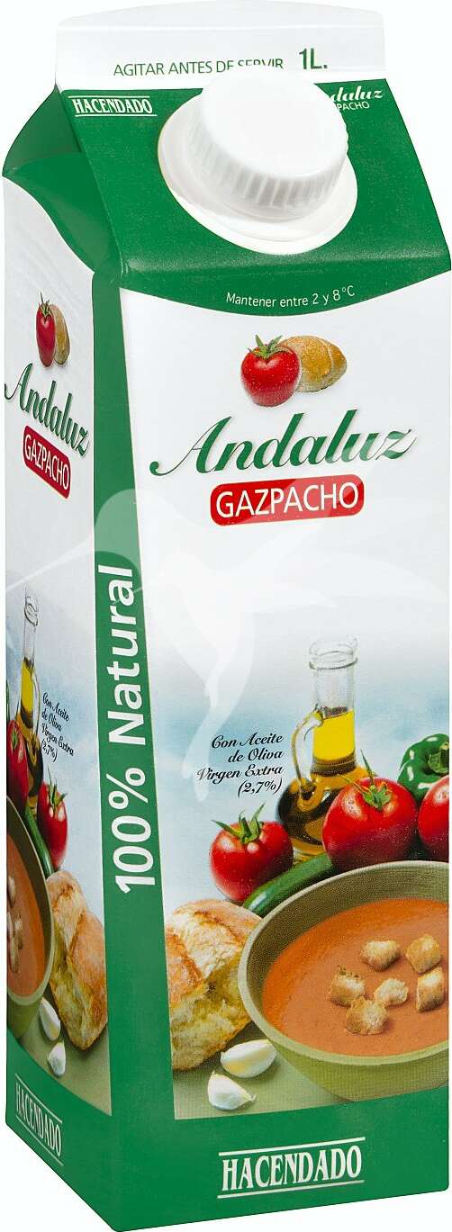 Otro de los gazpachos de Mercadona muy bien valorados por la OCU es la versión gazpacho andaluz, en cuya nota de cata la organización recalca el sabor del vinagre. La puntuación es de 4 sobre 5, al mismo nivel que el gazpacho de El Corte Inglés o el de Lidl. Está elaborado con tomate, pimiento, pepino, pan rallado, sal, vinagre de Jerez Reserva, ajo y un 2,7% de aceite de oliva virgen extra. Esta versión como vemos, sí que lleva pan, por lo que es algo más espeso, ideal para tomar con cuchara. No es apto, para celíacos.