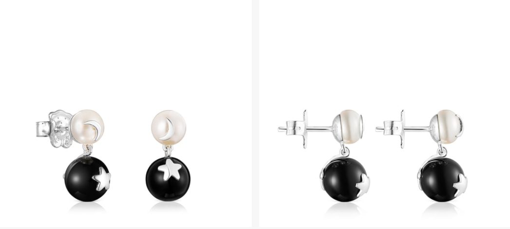 Con una perlita más pequeña con diseño de luna y otra más grande en negro con estampado de estrella, estos son algo más llamativos sin perder la elegancia. Los tenemos disponibles por 60 euros.