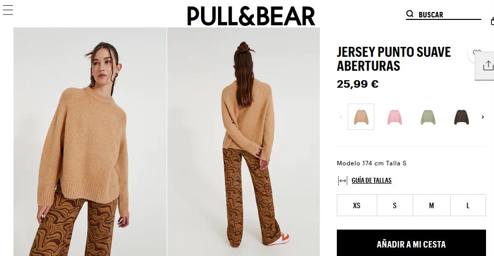 Es un jersey de punto suave que cuenta con una abertura en la parte de los lados, e inclusive es de cuello redondo para generar un estilo serio. Cuenta con unos detalles de rib en la parte de abajo y puños. Es perfecto para que las mujeres lo usen en la temporada de otoño, ya que se puede obtener en diferentes colores. Para que puedan obtener este increíble jersey solo deben entrar Pull & Bear por un precio de 25,99 €.