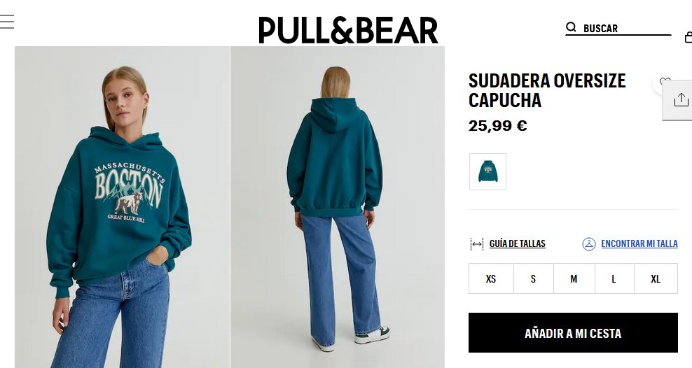 Es una increíble sudadera oversize que cuenta con una hermosa capucha con cordón para dar ese estilo, por lo que es perfecta de usar en esta temporada de otoño. Además, tiene un hermoso estilo gráfico delantero, inclusive posee un cuello tipo v. Tiene unas increíbles mangas largas en que hacen contraste con el diseño que tiene, entonces si la desean comprar solo deben entrar a Pull & Bear por 25,99 €.