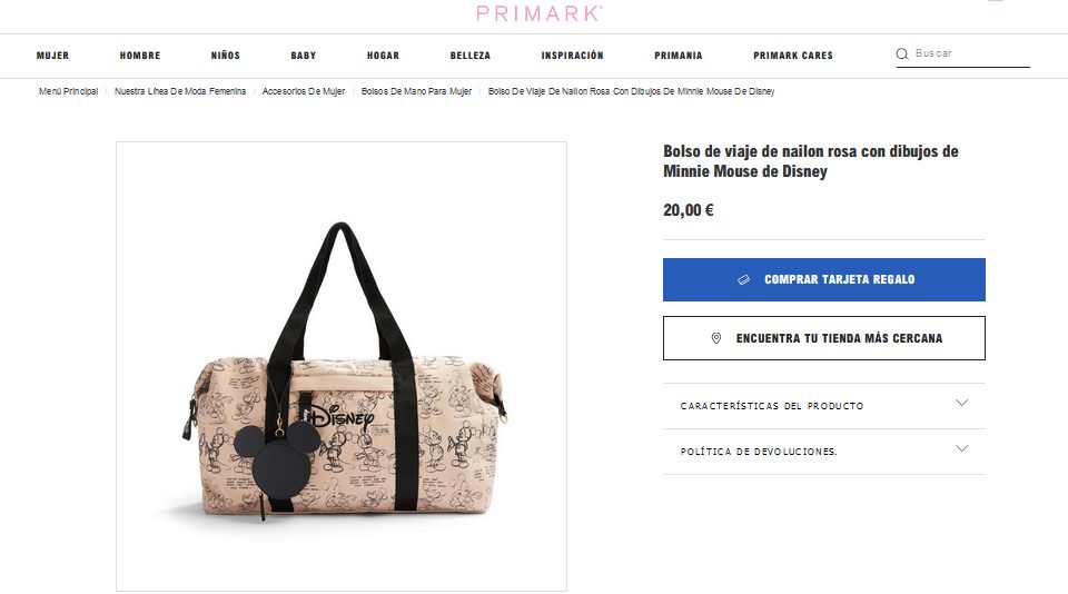 Es un bolso perfecto para las personas que aman ir de viaje, dado que cuenta con un diseño increíble. Se ha convertido en unos de los preferidos de las adolescentes por el estilo que tiene de los dibujos animados de Minnie Mouse de Disney. Además, está elaborado con un material de nylon de rosa generando una mayor resistencia al peso. Entonces, si desean comprar el bolso de viaje solo deben entrar a Primark por un precio de 20,00 €.