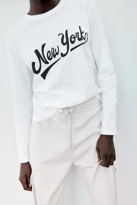 Las camisetas con texto están en plena tendencia, ya que aportan un toque especial a una prenda básica que podemos combinar con prácticamente todo. En Zara ahora podemos encontrar esta camiseta de manga larga y cuello redondo de color blanco, con una inscripción en la parte delantera en color negro a contraste. Cómoda y con un fit regular muy favorecedor, se puede combinar de muy diferentes maneras. Inclúyela en tu guardarropa por solo 7,95€.