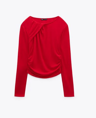 Los fruncidos son otra de las tendencias que llevamos viendo varias temporadas, y este otoño van a seguir presentes en diferentes tipos de prenda. En Zara hemos encontrado este llamativo top de cuello redondo, manga larga y con un detalle fruncido en un lado, que le da un toque único, original y muy especial. Es de un color rojo vivo, así que se trata de un top pensado para llamar la atención, aunque a la vez es muy versátil, ya que se puede incluir tanto en estilismos de fiesta como en otros más urbanos. Está confeccionado en 100% poliéster y cuesta 15,95€.
