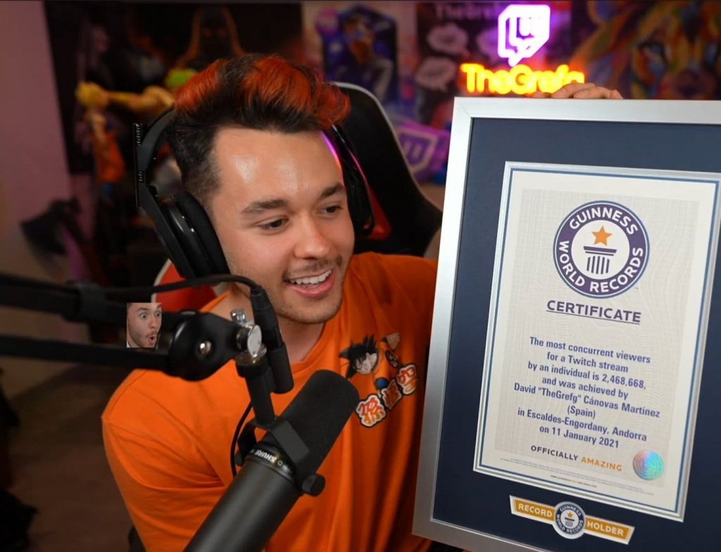 El 11 de enero del año 2021, una retransmisión por Twitch, David The Grefg tuvo una audiencia de 2.468.668 seguidores, esto fue registrado en Alhama de Murcia.