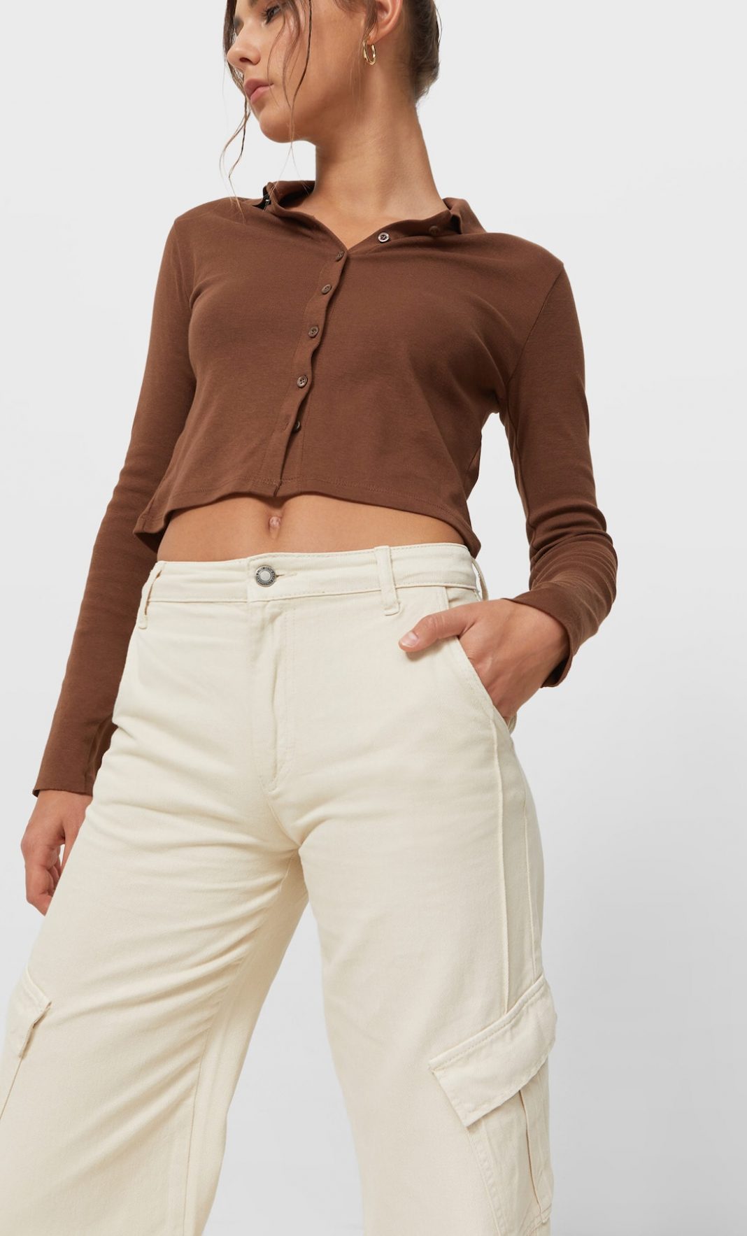 Casual y elegante, para combinarlo con la mayor facilidad, con unos cómodos zapatos o unas delicadas sandalias, la comodidad será tu mejor compañera, casual con un top o camiseta corta y ajustada y más formal con una camisa ancha y una cazadora. En color piedra. Stradivarius lo tiene en 29.99 euros.