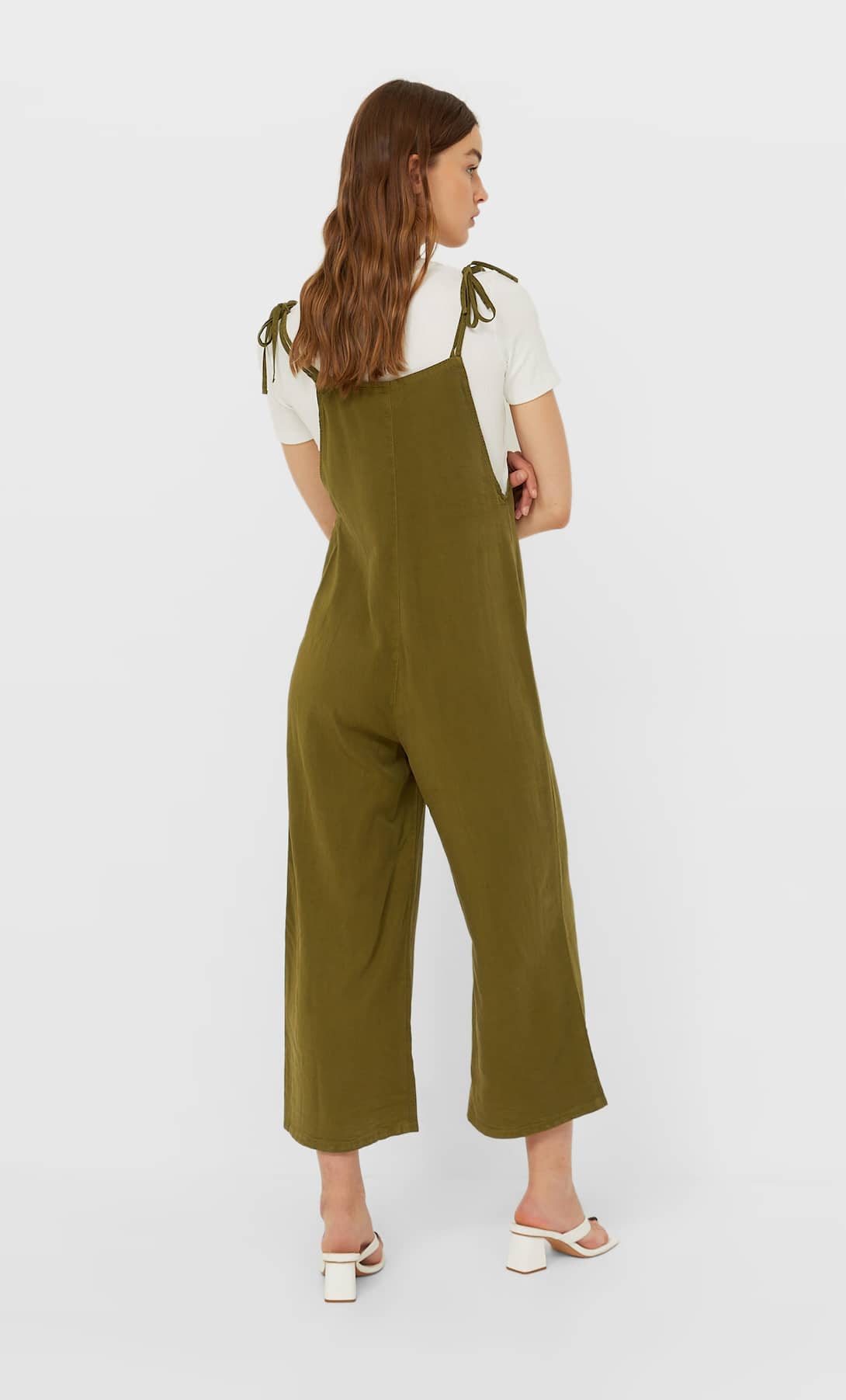 El peto fluido que conseguirás en las tiendas Stradivarius, te dejara totalmente enamorada y con seguridad formara parta de tu closet. Su diseño está pensado en la mujer activa y atractiva de hoy, su peto viene con escote recto y con delicados tirantes elaborados en tejido fino.