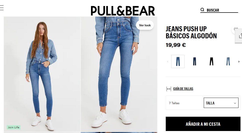 Es un hermoso Jeans push up básicos, que cuenta con unos increíbles bolsillos para ese toque elegante y serio. Además, tiene una cintura con trabillas, cierre de botón y cremallera, están confeccionados en algodón ligeramente elástico. Cuenta con un largo entrepierna del pantalón de 71cm. Para comprar estos jeans solo deben entrar a Pull&Bear a un precio de 19,99 €.