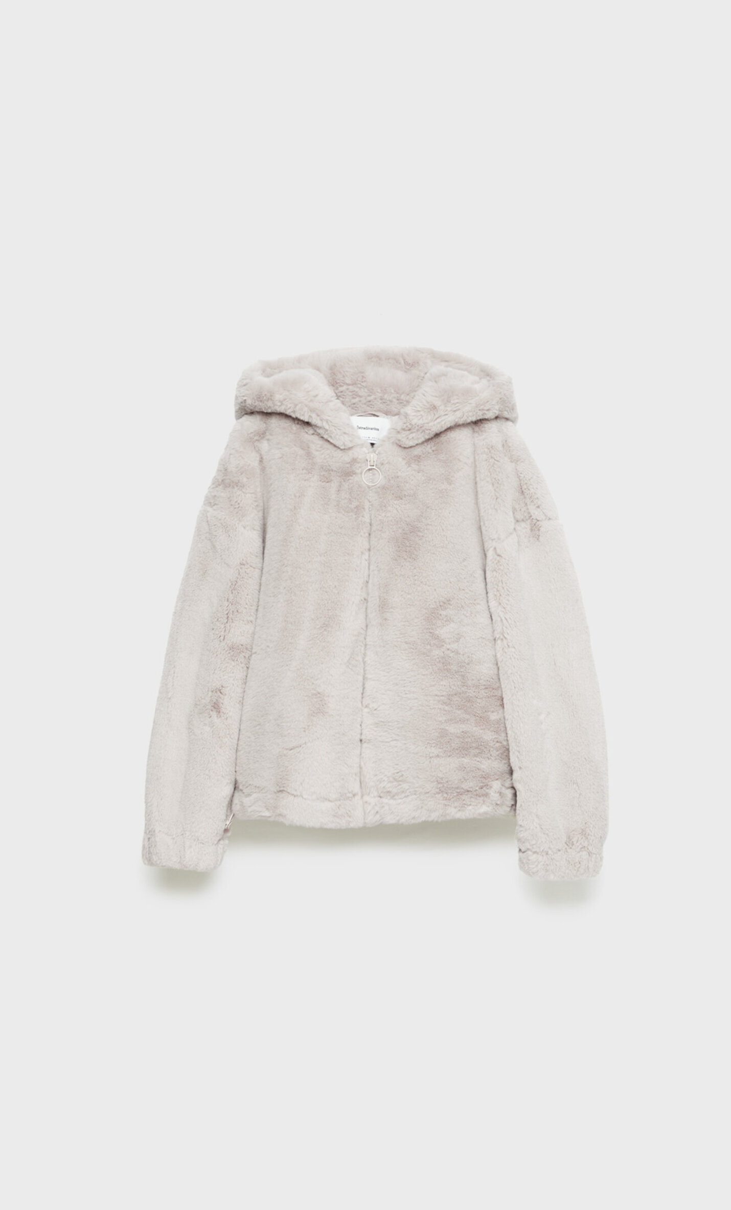 Entre las novedades de Stradivarius ahora puedes encontrar este diseño de cazadora con pelo suave y mullido en color crudo. El bajo se ajusta con cordones para que no pase ni una pizca de frío, y se cierra en la parte delantera con una cremallera. Lleva una amplia capucha para un extra de abrigo. Puede ser tuya por 39,99€.