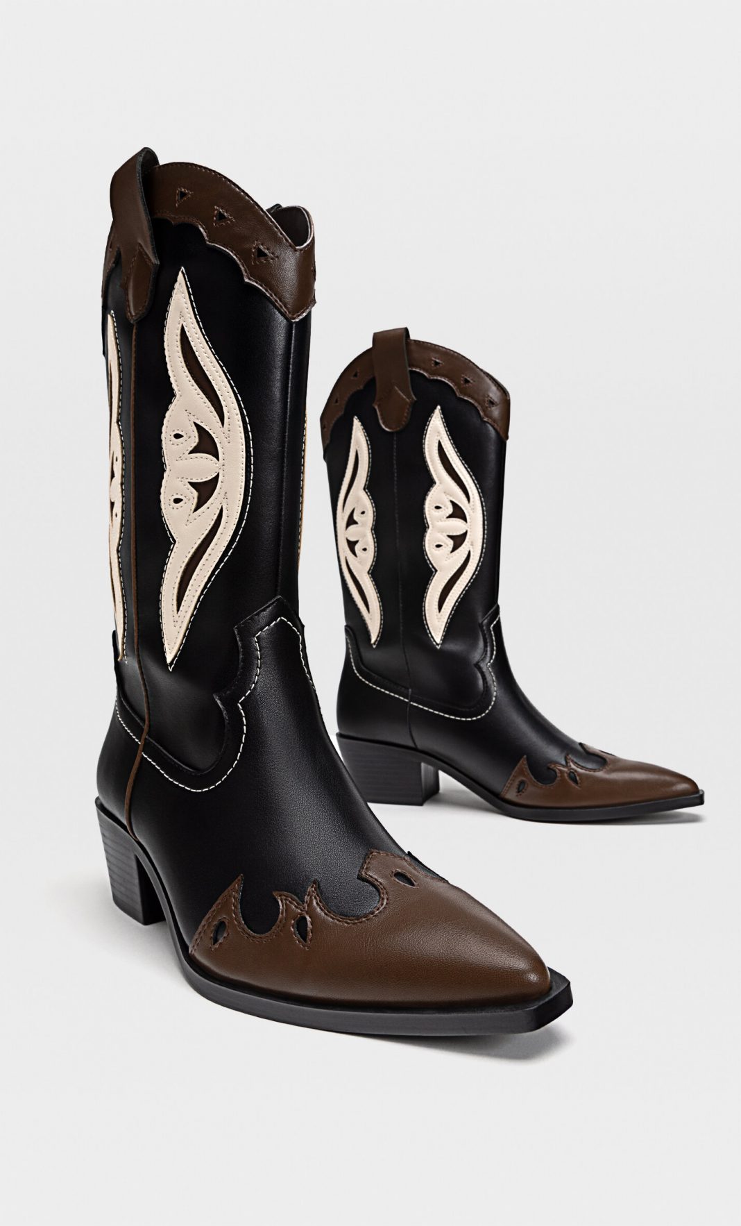 Las botas cowboy nunca llegan a pasar de moda, siempre están ahí como una opción aunque no admiten medias tintas: o las amas o las odias. Es un tipo de calzado capaz de darle mucha personalidad a cualquier estilismo, por eso son una apuesta fuerte. En Stradivarius ahora tienen este modelo con un tacón de 8,5 cm y caña de altura media con apliques bordados a contraste.