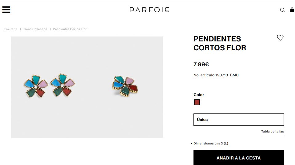 Son unos hermosos pendientes corto flor que se ha convertido uno de los preferidos de las mujeres, dado que cuenta con un diseño de flor y sus pétalos son de diferentes colores. Además, son una de las joyas perfectas que pueden usar con un hermoso vestido o camiseta, mejor dicho, la prenda que deseen. Inclusive, es uno de los pendientes perfectos para aquellas mujeres que desean resaltar la joya. Si están buscando una increíble joya solo deben entrar a Parfois para que compren este pendiente corto flor por un precio de 7.99€.