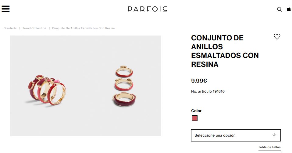 Es un hermoso conjunto de anillos que cuenta con sello esmaltados, y además están combinados con un hermoso estilo en resina. Además, se ha convertido en uno de los preferidos de las mujeres cuando entran a la tienda a comprar una joya. Ya que, con estos pueden obtener un gran estilo único que ninguna otra mujer puede tener. Entonces, si quieren comprar este hermoso conjunto de anillos solo deben entrar a Parfois por un precio de 9.99€.