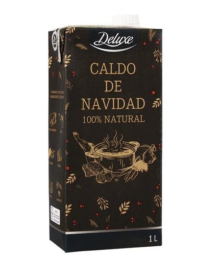 Otro producto Deluxe de Lidl en oferta es el llamado caldo de Navidad, elaborado con pollo de corral. Se vende en bricks de 1 litro y es perfecto para utilizar como condimento en guisos, o para preparar ricas y sabrosas sopas, añadiendo algunas verduras y tu tipo de pasta preferido. Esta semana puedes llevártelo rebajado por 1,39€ la unidad.