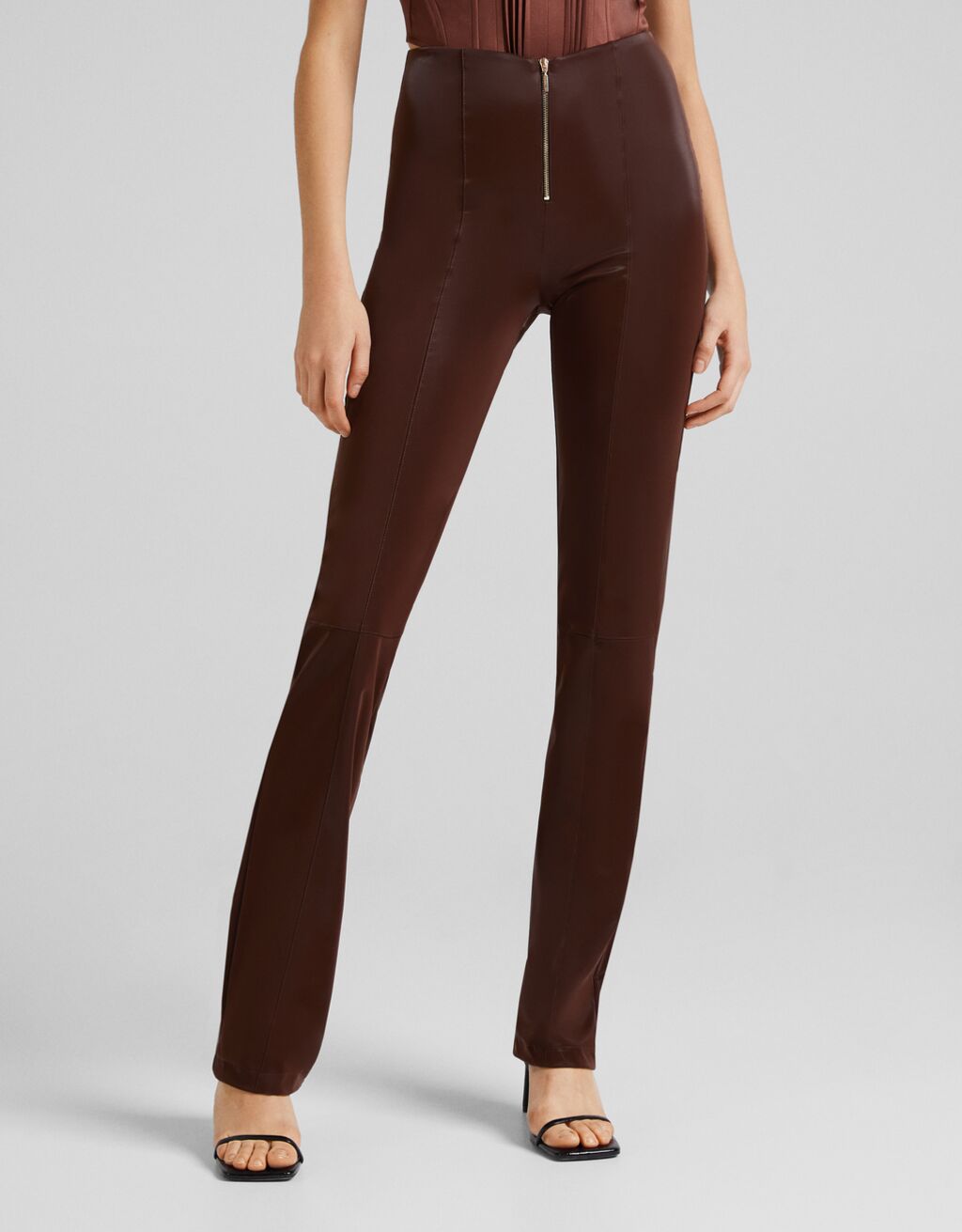 En diseño largo y talle alto, corte recto ajustado a tus piernas y con cierre de cremallera. No quedaras mal, modelándolo en alguna reunión de tu trabajo, cualquier día que lo quieras lucir en tu oficina o para caminar visitando las tiendas de algún centro comercial. Vienen en color marrón y en promoción Bershka por 29.99 euros.