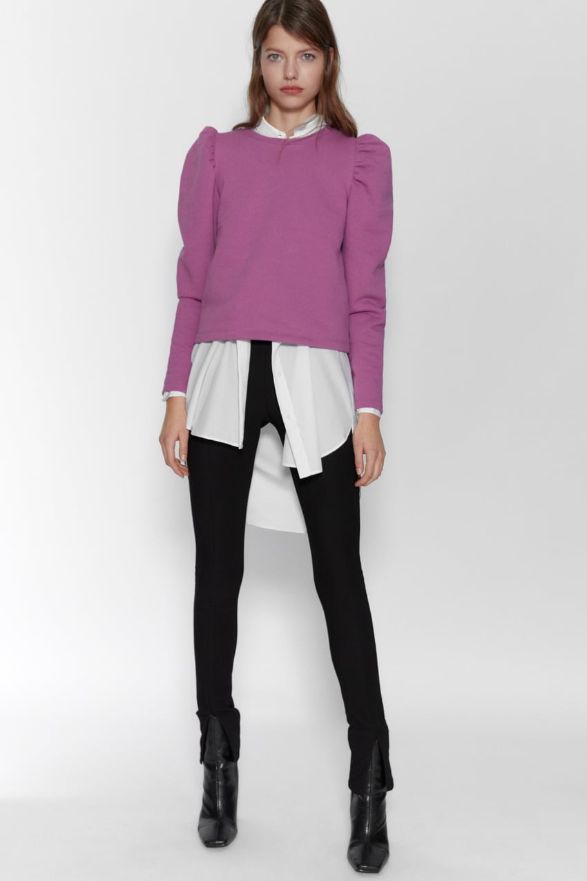 Conscientes de que ya podemos salir a la calle y volver a practicar deporte, en Zara no dejan de «fabricar» prendas pensadas para estos primeros momentos de desescalada. En ese sentido, tenemos esta prenda que es práctica y estilosa a la vez. Se trata de una sudadera corta de cuello redondo y manga larga abullonada en hombro. Disponible en todas las tallas y en tres colores más además del lila de la foto: negro, crema y también a rayas. Será tuya por tan sólo 12,95 euros.
