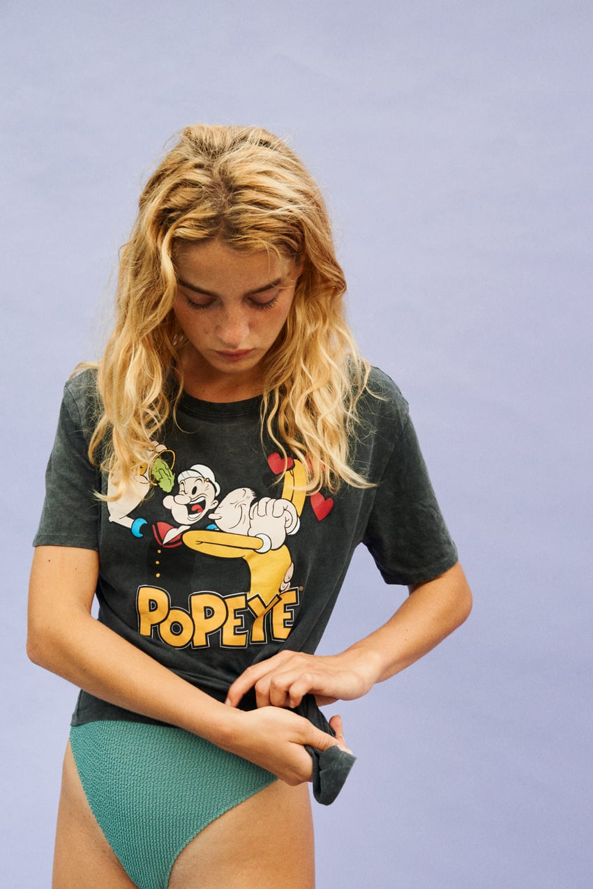 Por tan solo 15,95 euros tienes esta fantástica camiseta de Popeye con aire retro. Es de color gris antracita, de manga corta y con efecto lavado. Las camisetas de dibujos animados ochenteros llevan tiempo pegando fuerte en el streetstyle. Esta tiene estampación por la parte delantera y por la trasera. Es 100% algodón y está prácticamente agotada así que si la quieres ¡vuela a la página web de Zara!