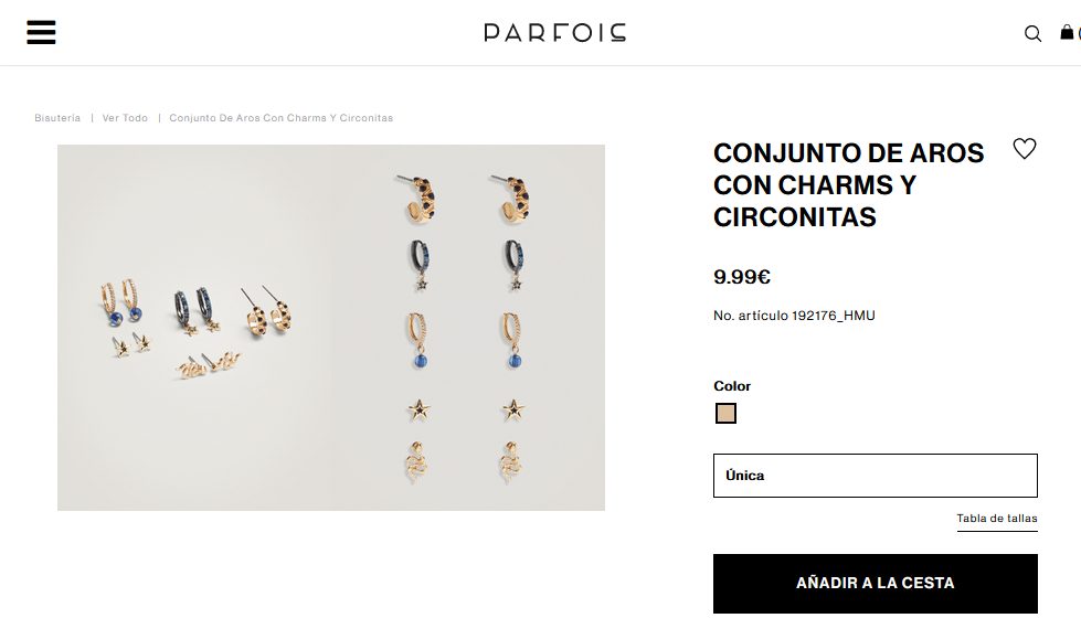 En esta última opción, pueden observar un conjunto de aros con charms y circonitas de diferentes estilos. Por lo que, se han convertido en unas de las grandes joyas preferidas de las mujeres, ya que se pueden disfrutar prendas de diferentes estilos. Siendo estas perfectas para combinar con cualquier joya de la misma tienda por la variedad que ofrece este conjunto de aros con charms y circonitas. Para comprar esta hermosa joya solo tienen que entrar a Parfois por un precio de 9.99€.