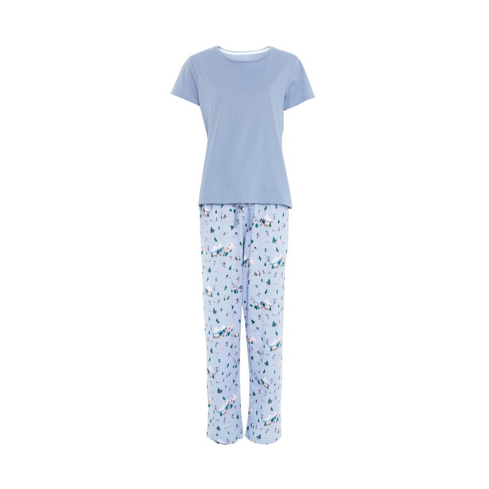Para dormir busquemos la mayor comodidad, eso incluye tu cama bien arreglada, buena temperatura y una excelente pijama. Las tiendas Primark para consentirte al dormir tiene la Pijama azul de manga corta con estampado.