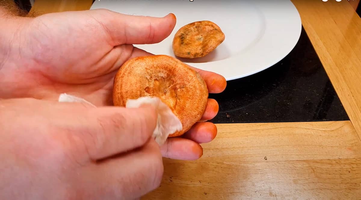 Con el sofrito elaborado, ha llegado el momento de ponernos con otro de los ingredientes principales de esta receta de garbanzos: los níscalos. Lo primero que haremos será lavarlos.