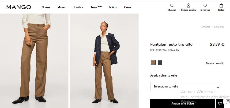 Es un hermoso pantalón que está elaborado con un tejido ligero, además, cuenta con un diseño completamente largo y recto. Además, tiene unos tiros altos, solapas con muescas. Tiene cinco bolsillos en la parte delantera, para darle ese toque que todas desean. Lo pueden cerrar en la parte delantera con botones, para obtenerlo solo deben entrar a Mango por un precio accesible de 29,99 €.