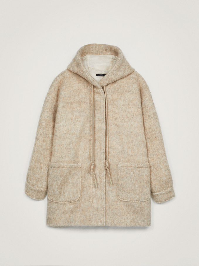 En diseño recto, dos bolsillos en su parte delantera, su delicada y atractiva capucha te resguardara del frio desde tu cabello. En un delicado color crudo que podrás combinar con facilidad para la ocasión que se te presente. Su costo 59.99 euros–