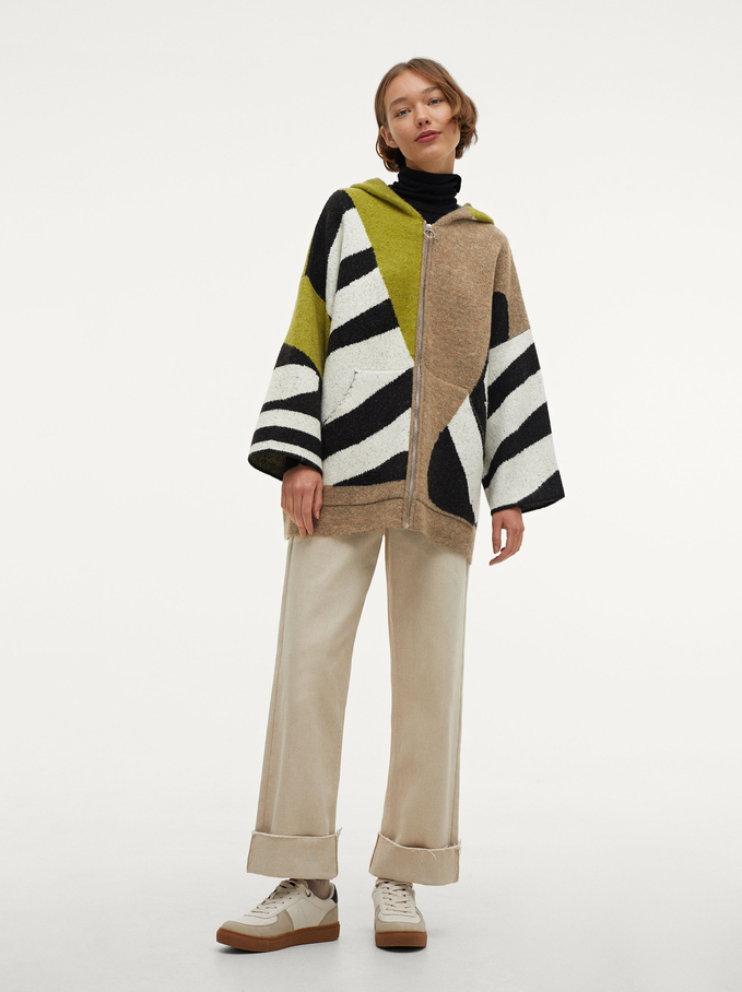 Una prenda exclusiva, vistosa, atractiva, donde el estilo y la elegancia serán tus aliadas y compañeras. Modela en este invierno la chaqueta de punto diseño Patchwork, en una tarde casual o en una noche de gala.