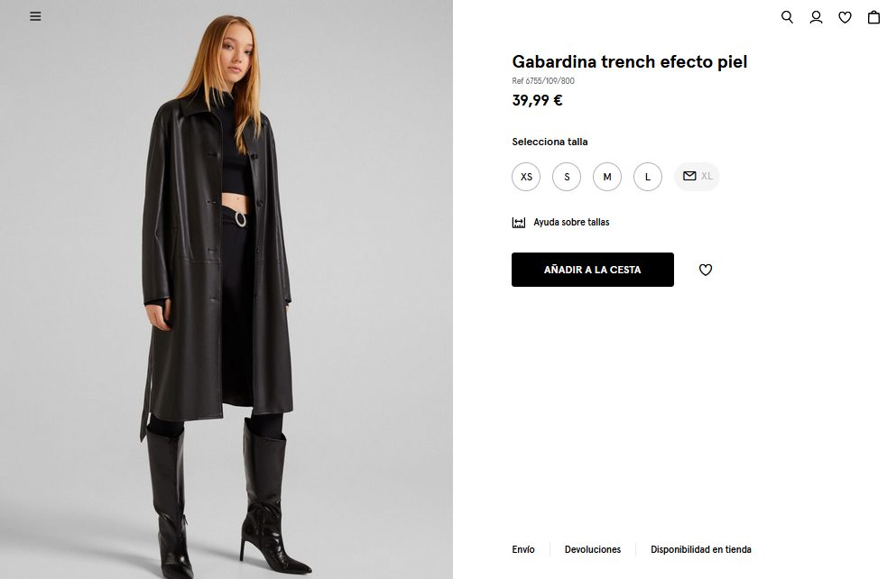 Esta hermosa gabardina es perfecta para usar en esta temporada de invierno, por lo que no deben de dejar de comprarla. Ya que, esta cuenta con un hermoso estilo de efecto piel para generar esa elegancia en una noche tan importante. Además, para lograr ese estilo perfecto la pueden usar con una camiseta del mismo estilo y lograran el look que están buscando. Entonces, si desean comprar esta gabardina trench solo tienen que entrar a Bershka a un precio de 39,99 €.