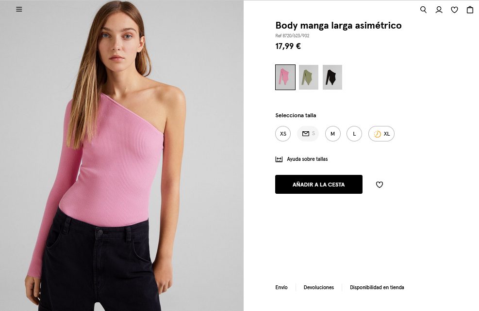 Es un gran body que cuenta con unas mangas largas completamente asimétricas. Siendo perfecto para usar y marcar ese cuerpo que todas desean o están buscando. Además, para lograr ese estilo perfecto la pueden usar con un pantalón del mismo estilo y lograran el look que están buscando. Entonces, si desean comprar este body solo tienen que entrar a Bershka a un precio de 17,99 €.
