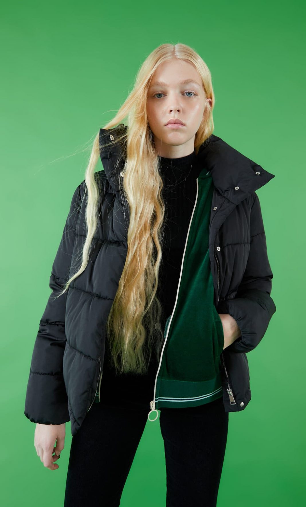 Cuando quieras disfrutar de una caminata nocturna, o una tarde placentera, sin importar la temperatura que reine en el ambiente y poder derrochar fácilmente tu estilo al caminar, busca en las tiendas Stradivarius la Cazadora acolchada cuello alto.