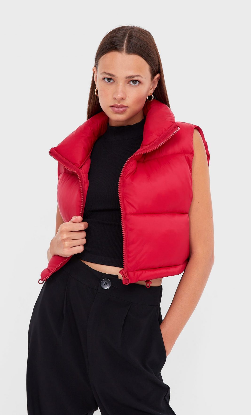 Los chalecos nunca pasaran de moda, la mayoría son fáciles de combinar y puedes llevarlos de noche y de día, en la ocasión que se presente. Stradivarius tiene el chaleco puffa crop, que lo encontraras en cualquiera de sus tiendas.