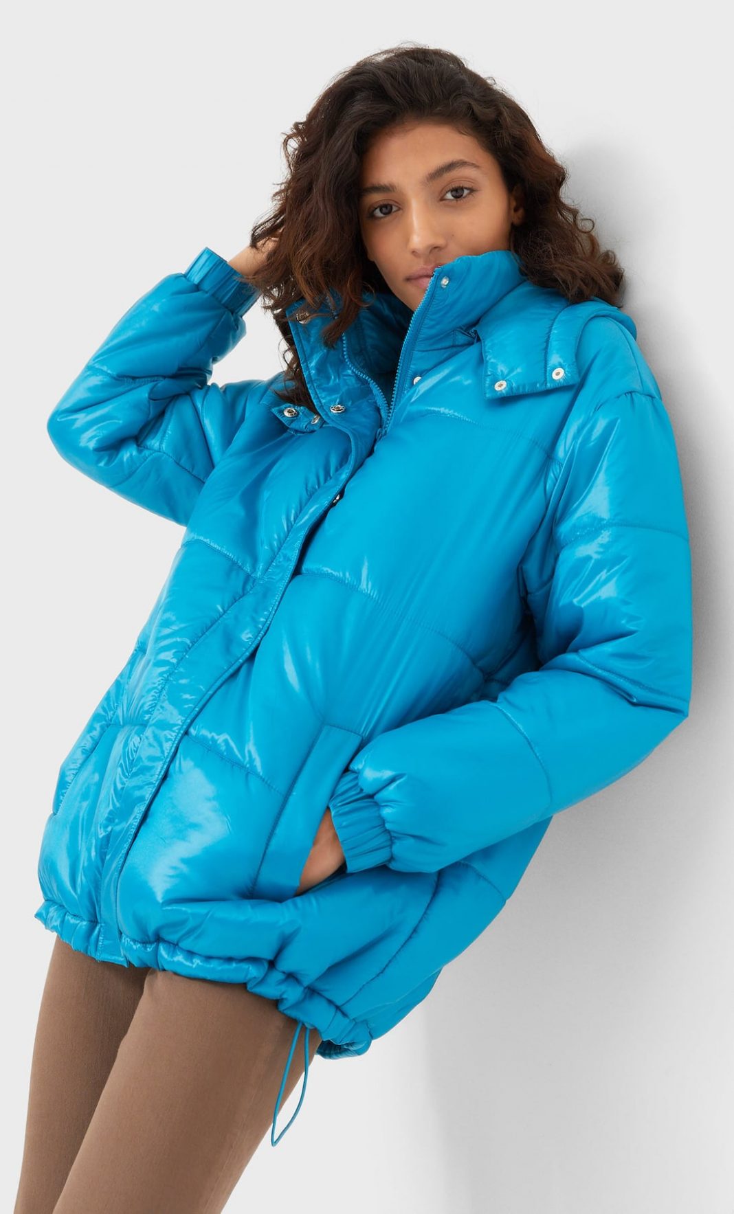En una noche fría, donde tu encanto brille y resalte tu hermosura, la Cazadora satinada acolchada que tienen las tiendas Stradivarius, te darán ese look especial, de toda dama moderna, que acapara las miradas, mientras luce su glamur.